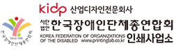 (사)한국장애인단체총연합회 인쇄사업소는 산업디자인전문 디자인회사로 시각디자인, 편집디자인, 인쇄제작까지 모든서비스를 직접생산으로 원스톱 서비스를 제공하고있습니다.